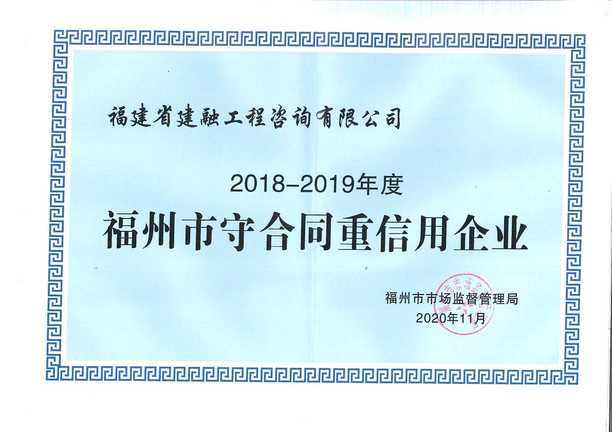 建融公司獲得2018-2019年度福州市守合同重信用企業(yè)
